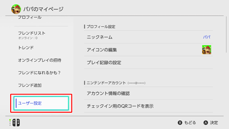 1)Switch本体に該当のニンテンドーアカウントが連携されているか確認する