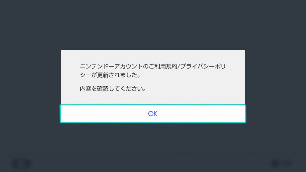 ▼利用規約更新のお知らせメールのURLを開いて同意したが、Switch本体では同意が求められている方はこちら