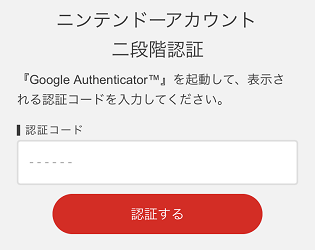 ニンテンドーアカウントにログインしようとしたときに、上記画像のように「認証コード」が求められた場合は、そのアカウントで二段階認証を設定しているということになります。